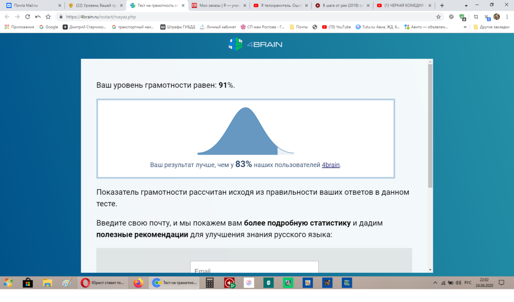 Предлагаю Вам пройти тест на грамотность «Проверьте своё знание русского языка!» и определить, насколько Вы хорошо знаете русский язык. https://4brain.ru/outact/rusyaz.php