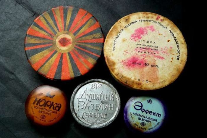 С пудрой дела обстояли намного проще, так как здесь был достаточно большой выбор. Все пудры были рассыпчатыми и относились к различным группам (А, Б, В, высшего качества), что зависело от содержания отдушки и размера частиц. Для кожи нормального и жирного типов производили специальную пудру с названием «Ленинградская». Модницам были доступны стандартные тона – рашель (желтый), персиковый, белый, натуральный, розовый. Состав средства стандартный для всех видов. Среди женщин особенно ценилась пудра, содержащая рисовую муку, которая позволяла добиться матирующего эффекта. В продаже же в основном были продукты, напоминающие меловый порошок. Естественно, они ничего не скрывали