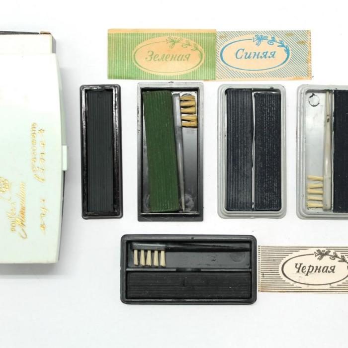 С косметическими карандашами для стрелок дела обстояли крайне сложно. Единственно доступными были карандаши «Косметика». С их покупкой возникали затруднения, да и стоили они дорого (один рубль). Поэтому дамы нередко использовали обычные художественные изделия. Тени же могли заменить мелками, тем более, что по качеству то они особо не отличались.