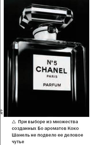 Во-вторых, почему такое название? Мадемуазель Шанель, имевшая очень модный кутюрный дом, просила меня создать для нее духи. Я показ ей серии от 1-го до 5-го и от 20-го до 24-го номера Она выбрала несколько, и среди них N 5. "Как назвать эти духи?" — спросил я ее. Мадемуазель Шанель ответила: "Я представляю коллекцию платьев пятого числа пятого месяца, то есть в мае. Значит, оставим духам номер, который они носят. Этот 5-й номер принесет им успех". Сознаюсь, она не ошиблась. Эта новая нота духов еще пользуется большим успехом; мало у каких духов было так много подражателей, мало какие духи так старательно подделывали, как "Шанель N 5"".