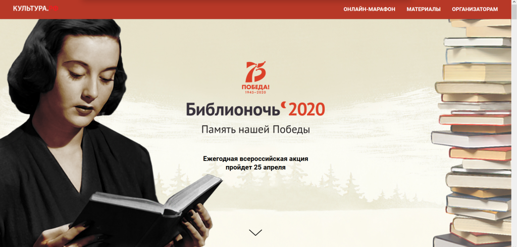 С 25 апреля с 4 часа дня по 9 Мая (наш День Победы) - Министерство культуры России и ряд других организаций запускают онлайн-марафон, посвященный 75-летию окончания войны.