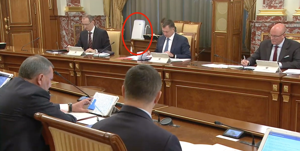с членами кабмина. Такой же облучатель стоит в кабинете Путина.