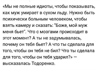 Может сложится впечатление, что до недавнего времени Тодоренко жила уединенно в замке, не имея возможности узнать, как живут люди за его пределами и вот она вышла из замка, и дивный новый мир ее сильно поразил. Конечно же, многие усомнились в ее искренности – поскольку получается, что буквально за два дня личная позиция и мнение человека поменялись на 180 градусов.