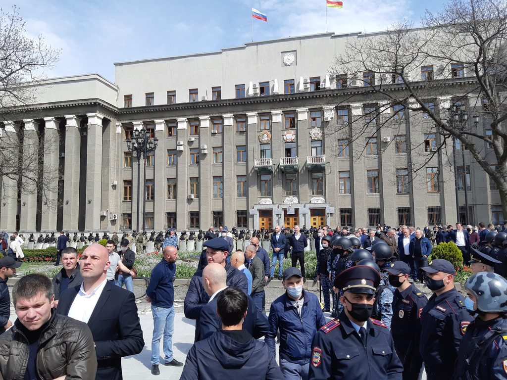 20 апреля на площади Штыба во Владикавказе прошла несанкционированная акция протеста против режима самоизоляции, позднее ее участники переместились к Дому правительства. Люди протестовали против ограничений, а также против задержания оперного певца из Северной Осетии Вадима Чельдиева, который ранее также выступал против ограничительных мер. Глава Северной Осетии Вячеслав Битаров призвал участников акции к конструктивному диалогу и позже встретился с инициативной группой.