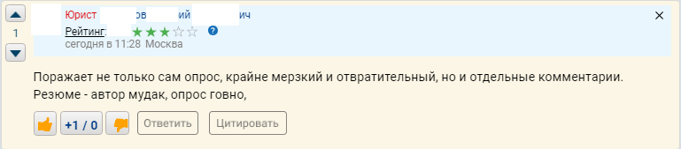 Поражает не только сам опрос, крайне мерзкий и отвратительный, но и отдельные комментарии.