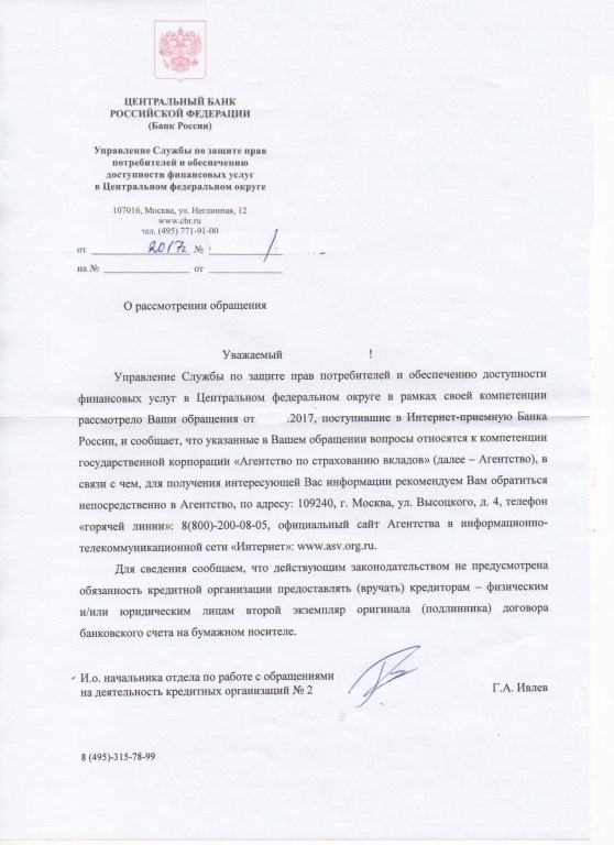 Предлагаю обратить внимание, на последнее предложение ответа ЦБ (файл прилагаю)...