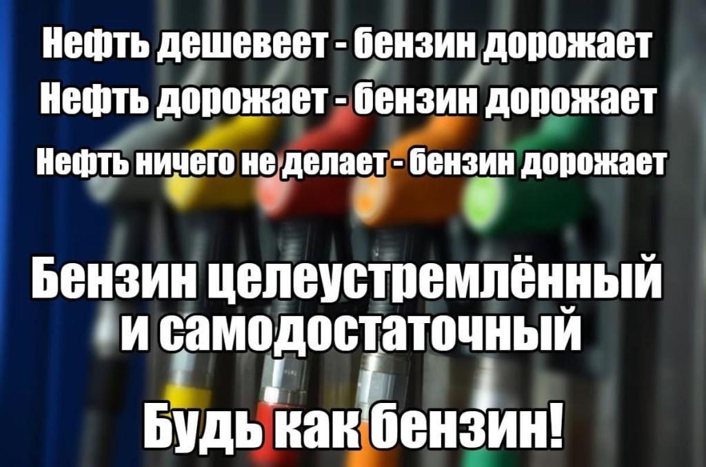 А еще меня, и не только меня, удивляет цена на бензин. Ведь если цена на нефть упала, то...должна упасть и цена на бензин. Однако аналитики говорят, что цена обоснована, потому что Россия продает теперь нефти мало, а выручку где-то брать надо... То есть, в любом случае платит народ...