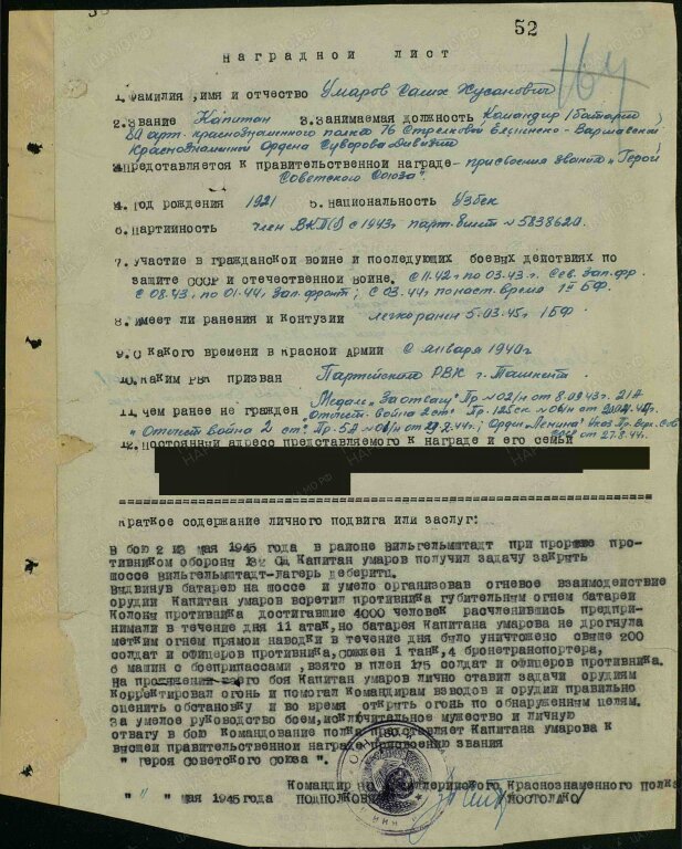 две роты и один танк противника, за выполнения этой боевой задачи прадедушке было присвоено звание-лейтенант.13 июля 1942 года на базе Туркменской бригады было организовано 76-я стрелковая дивизия в составе которой прадедушка командовал 1-взводом 80-го артиллерийского полка 47-й армии 1-го Белорусского фронта.