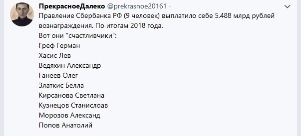 У меня это вызывает некий диссонанс - Глава Счетной палаты Алексей Кудрин заявил, что за прошлый год из бюджета страны своровали 804 миллиарда рублей, а дел заведено всего на 3 млрд, т.к. на большее нет полномочий... Неплохо а? и 804 млрд - это вообще рекорд за все годы... аппетиты растут с козмической скоростью... ида 804 - это то что официально выявлено, а не официально сколько? Больше триллиона своровали к гадалке не ходи если не больше, а тут "платите налоги - это нормально!" А нормально что эти налоги пойду кому то на виллу в майями или личную яхту за 200 млн$? А дороги останутся роазбитыми как и были.