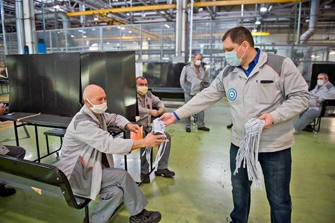 «Все цеха, офисы, оборудование и инструменты были продезинфицированы. Сотрудники обеспечены масками. Приобретены термометры и организован контроль температуры тела в течение рабочего дня. На проходных, в рабочих зонах, столовых, зонах отдыха и в местах общего пользования нанесена разметка для поддержания безопасного расстояния. В столовых изменена схема рассадки, адаптирована схема раздачи блюд. При необходимости корректируется скорость сборочных линий», говорится в официальном сообщении пресс-службы.