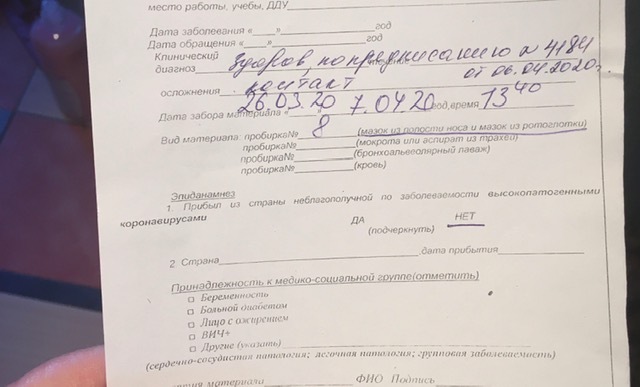 После продолжительной беседы мне показали бланк на анализ, а также порекомендовав звонить на горячую линию Роспотребнадзора за объяснениями. И, здраво рассудив о возможности принудительных мер, сына я всё же предъявила. В бланке стояла дата контакта - 26 марта. Запомните, это важно. Итак, у моего старшего сына был взят мазок на коронавирусную инфекцию.