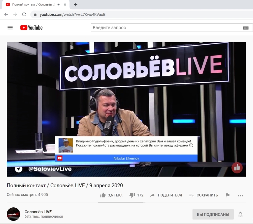 Кто смотрит ютуб-канал Соловьёва? www.9111.ru
