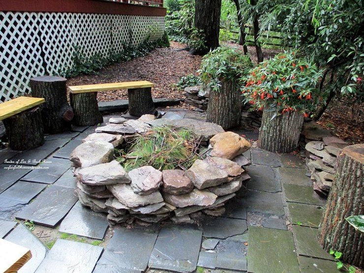 Чтобы сделать такой очаг из природного камня, понадобится чуть больше времени, зато какой результат. Настоящая уличная кухня.