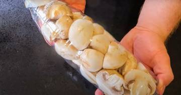 7. Перед подачей разрежьте бутылку и достаньте грибную колбасу. Нарежьте ломтиками