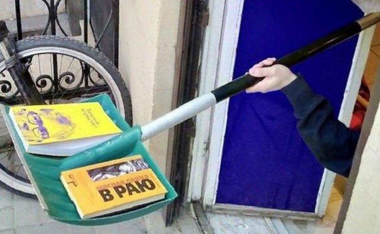 Петербургский книжный магазин, чтобы соблюдать социальную дистанцию, продолжает продавать книги, но только теперь с лопаты.