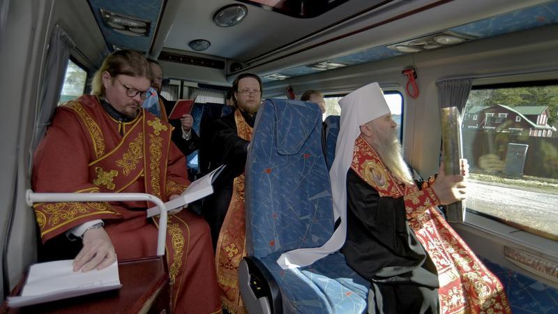 В пути священнослужители прочитали акафисты Воскресению Христову, Пресвятой Богородицe, великомученику Пантелеимону и Всем святым, в земле Санкт-Петербургской просиявшим. Также был отслужен молебен о прекращении эпидемии.
