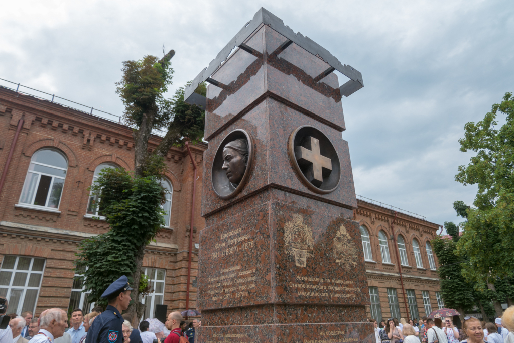 Памятник Юлии Вревской, Римме Ивановой и Матрене Наздрачевой был торжественно открыт на улице Морозова в Ставрополе. Церемония установки памятника трем медсестрам прошла около учебного корпуса Ставропольского государственного медицинского университета. На открытии присутствовали студенты и представители краевого отделения Российского военно-исторического общества, на заседании этого общества в 2015 году и было принято решение о создании такого памятника. Проект поручили Ивану Кисличенко – скульптору, члену Союза художников России.
