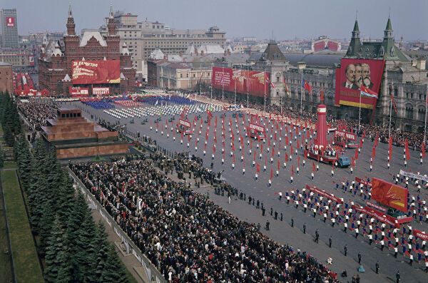 Итак, МИР, ТРУД, МАЙ! И в СССР ежегодно 1 Мая во всех городах и сёлах нашей необъятной тогда Родины проходили демонстрации. Граждане СССР с лозунгами и транспарантами шествовали по главным улицам своих городов и сёл. Демонстрации эти были многотысячными, а самая главная демонстрация нашей страны проходила в столице нашей Родины - в Москве.