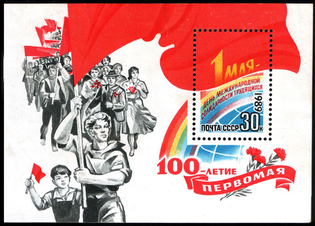 Почтовый блок СССР, 1989 год: 100-летие Первомая
