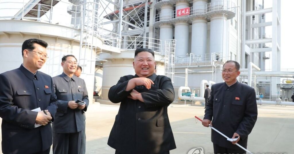 По его данным, руководитель КНДР торжественно перерезал ленту на церемонии завершения строительства завода по производству удобрений в городе Сунчхоне (провинция Пхеннан-Намдо).