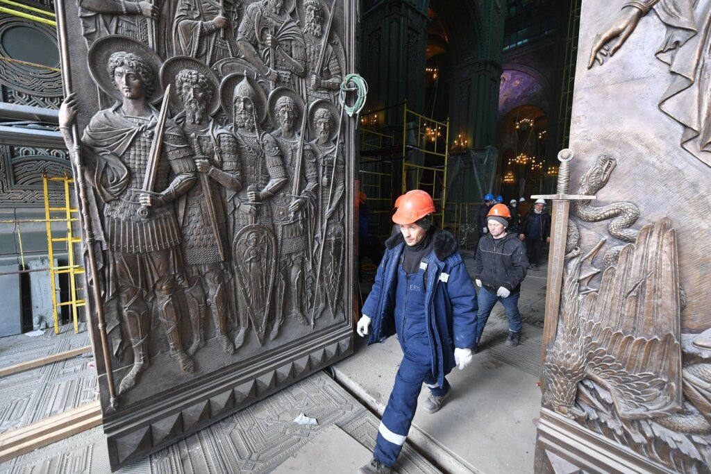 Ранее были опубликованы фотографии элементов внутреннего убранства храма, на которых были видны фрагменты мозаики с изображением господина Путина и ряда других российских политиков и чиновников, в том числе министра обороны Сергея Шойгу, спикера Совета федерации Валентины Матвиенко, председателя Госдумы Вячеслава Володина, секретаря Совбеза Николая Патрушева, директора ФСБ Александра Бортникова и начальника генштаба ВС Валерия Герасимова.