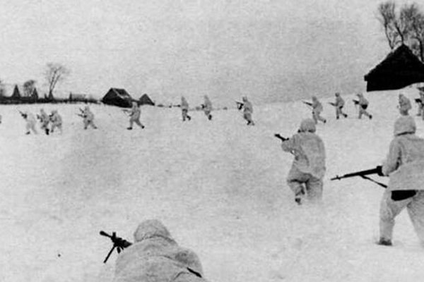 Солдаты опять стали падать прямо с неба, уже стреляя прямо в воздухе. Шел такой бой, что «мама-не-горюй». Бойцы в белых полушубках появлялись ниоткуда. Они крушили врага, падая из белого снежного неба. Рвались гранаты, стреляли противотанковые ружья, стоял грохот, и мат слышно было за полкилометра от места боя на двух языках.