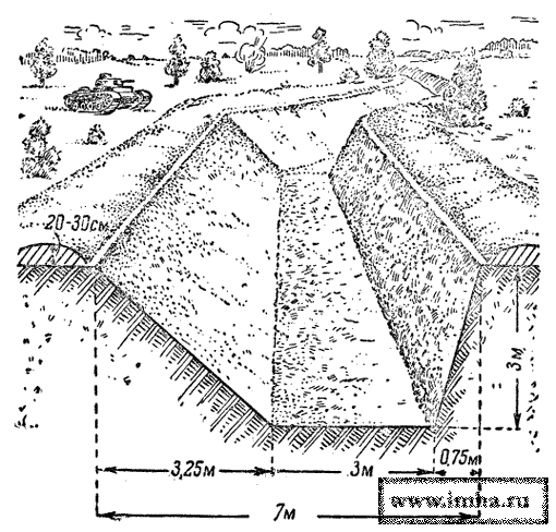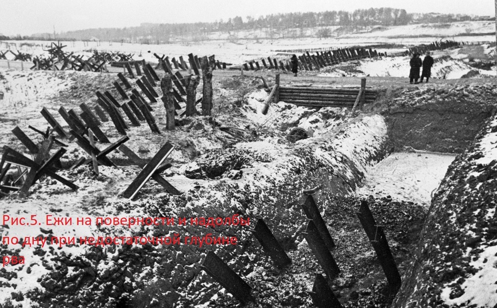 Вы абсолютно правы - одной из основных причин значительных потерь при описанном в рассказе беспарашютном десантировании могло быть отсутствие разметки расположения противотанкового рва на местности, дополнительной причиной возможных высоких потерь может быть не прямолинейность рва (рис.1) в плане. С учетом всего этого, приземлиться с летящего даже на посадочной скорости самолета в пятно рва, скорее всего, практически невозможно. Есть еще несколько причин, которые могли вызвать не приемлимый размер потерь: недостаточная глубина и ширина рва, недостаточная толщина снежного покрова, наличие на поверхности и дне рва под снегом надолб, ежей, льда и пр. (рис.2..5).