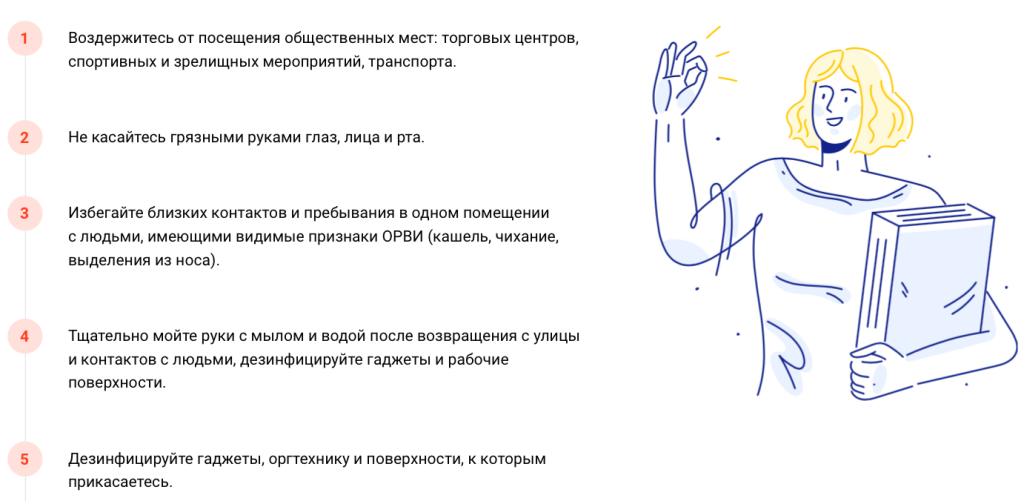 Профилактикой от коронавирусной инфекции COVID-19 являются соблюдение правил личной гигиены, соблюдение дистанции в 1,5-2 метра, использование средств индивидуальной защиты (СИЗ), дезинфицирующих средств, а так же необходимо стараться избегать места массового скопления людей.
