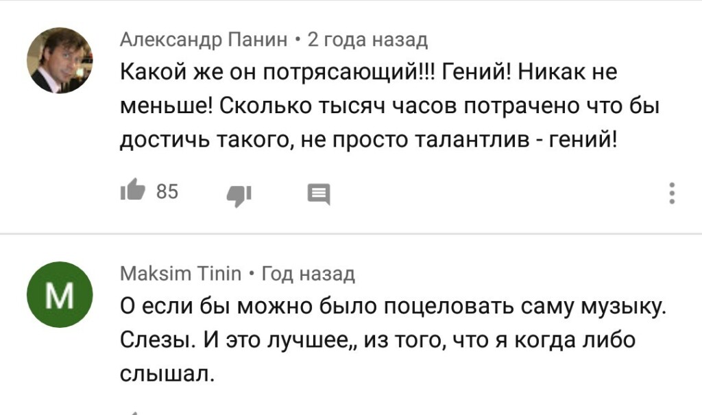 Это настоящий талант. Простой и веселый человек в общении. У него есть поклонники и в России, и за рубежом. Он выступает со знаменитыми музыкантами. Его называют Паганини. Он может быть и Паганини по мастерству игры, и скоморохом на ярмарке. Ему подвластно всё. Он обладает уникальной индивидуальной техникой игры на Балалайке. Когда он играет, все эмоции мы видим на его лице.