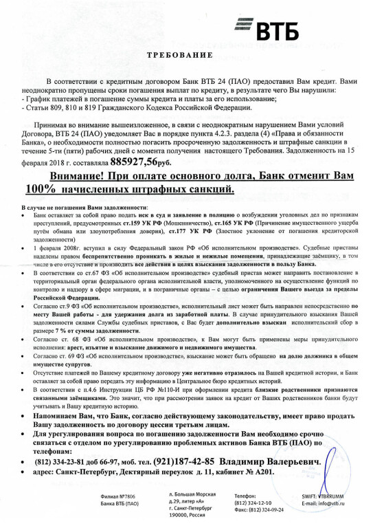 А вот 2-й лист этого требования ВТБ - пусть уж будет полный комплект.