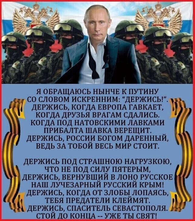Или вы думаете, был бы другой человек у руля государства, и стало бы лучше? Помните о том, что именно благодаря Путину, мы сейчас живем в единой стране. Даже страны Европы начали поворачиваться к России.