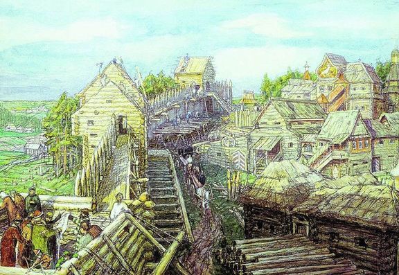 «Основание города Москвы. Постройка первых стен Кремля (Строительство деревянных стен Кремля. XII век)». А.М. Васнецов
