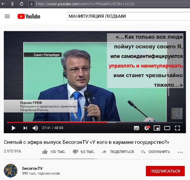 Несмотря на то, что новая дата общенародного голосования ещё неизвестна, хотелось бы напомнить о важности этого события в ракурсе одного из сюжетов первомайского выпуска программы Бесогон, в котором прозвучало мнение главы Сбербанка о манипулировании людьми.