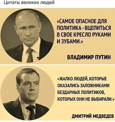 Некоторые власть имущие рассказывают свои сказки о том, как они хотели бы бросить эту опостылевшую власть, да вот только забота о своём народе им не позволяет это сделать. В любом случае надежды на то, что хороший и сильный человек придет во власть и всё там кардинально изменит во благо простого народа, если даже ему дать достаточно времени для этих самых изменений, довольно призрачны. Но, по моему личному мнению, всё-таки имеются исключения из правил, несмотря на то, что власть изменит даже хорошего человека, но не он – власть.