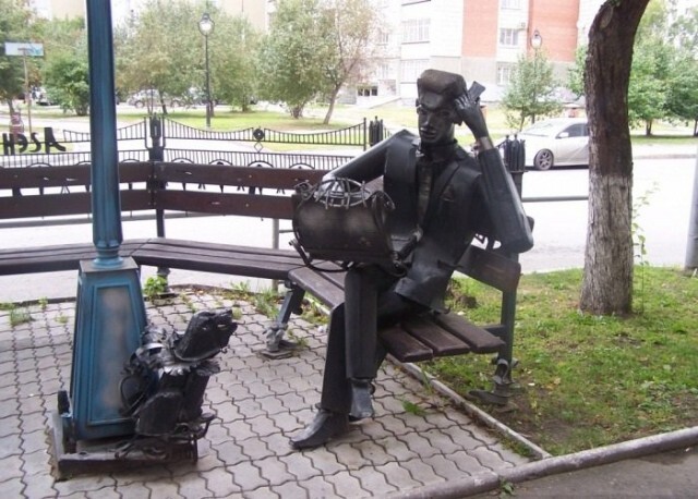 В России поставили памятник риэлтору. Находится он недалеко от одного из агентств недвижимости Екатеринбурга. Бронзовая скульптура носит название называется «Риэлтор с собачкой». Риэлтор изображен на лавочке с ноутбуком, разговаривающий по телефону, а на него смотрит преданными глазами собака. Забавно, что на мониторе ноутбука видны только два символа, символизирующие прибыль — «Y.E.»