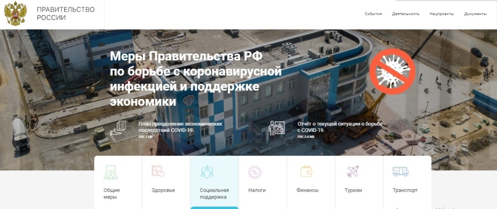 На сайте Правительства РФ граждане и бизнес могут узнать о действующих в России мерах поддержки в условиях распространения коронавирусной инфекции