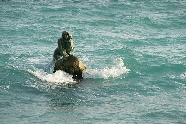 Бронзовая скульптура, установленная на камне прямо в море, посвящена печальной истории девушки по имени Арзы.