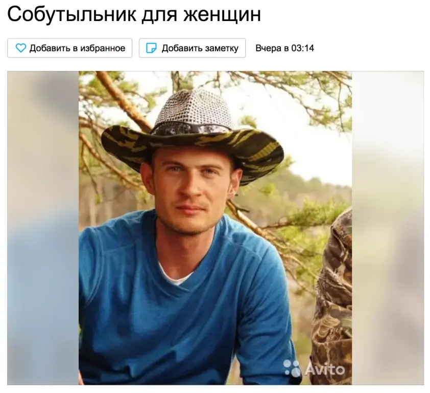 Автор объявления утверждает, что может помочь женщине выговориться, а также снимет розовые очки, чтобы женщина смогла найти себе реального нормального мужчину и обрести семейное счастье.