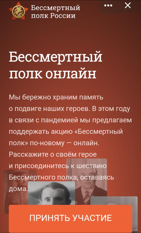 Всем кто хочет увидеть своего героя, в онлайн трансляции, добавьте его данные на этот сайт. Всем мира и добра. Бессмертный полк онлайн https://vk.com/app7413985
