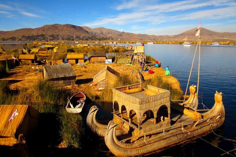 Плавучие тростниковые острова племён индейцев уру на озере Титикака