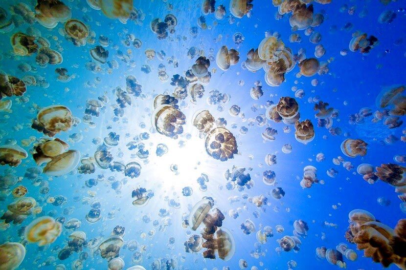 Один из уникальных водоемов нашей планеты находится на тихоокеанском архипелаге, которым владеет Республика Палау. Озеро Медуз имеет размеры 460 на 160 м и отделено от берега океана двухсотметровой полоской суши. В его слабо-соленых водах живет около 2 млн медуз! У них нет естественных врагов, поэтому огромная популяция активно размножается и процветает.