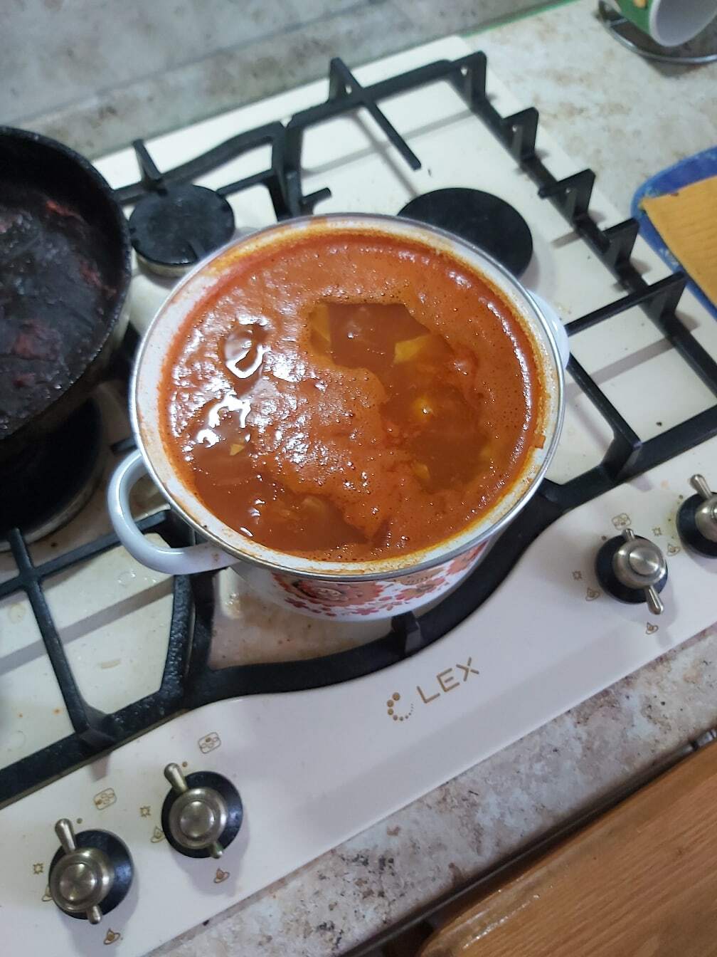 А всё потому, что НА ТОМАТНОЙ ПАСТЕ, (а цвет свекла должна дать)