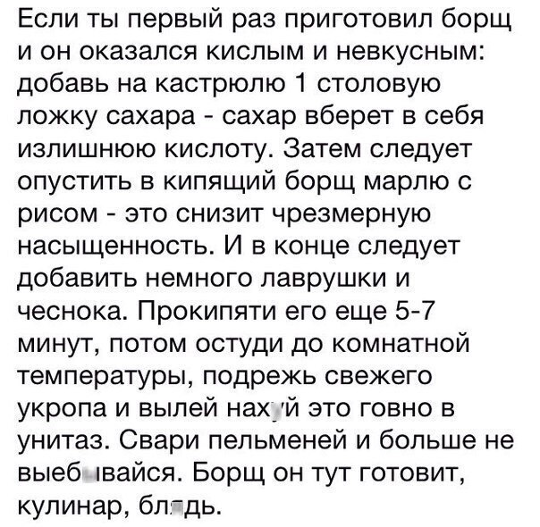Борщ должна готовить жена, или мама. А вот этот рецепт для настоящих пацанов: