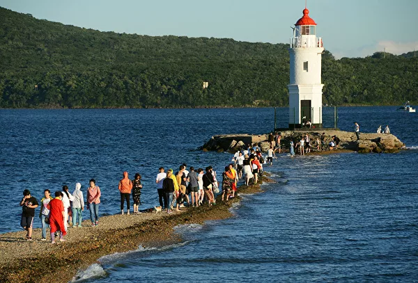 Отдыхающие на Токаревском маяке во Владивостоке.