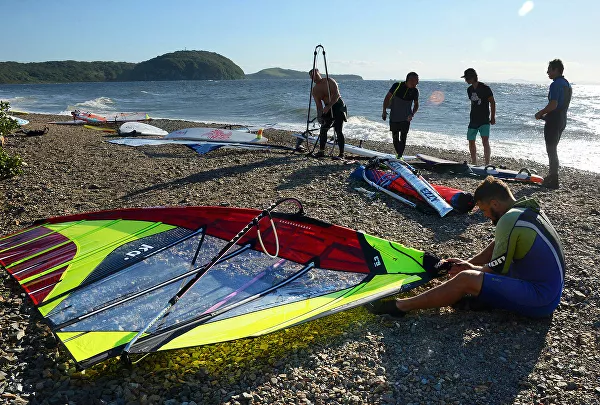 Виндсерфингисты на берегу Токаревской косы во Владивостоке