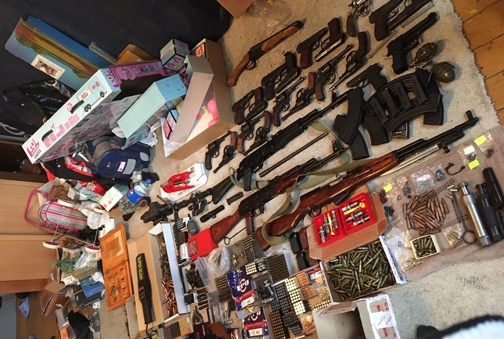 При обысках в регионах изъято 193 единицы огнестрельного оружия: 4 пулемета, 11 автоматов, 7 пистолетов-пулеметов, 92 винтовки, карабина и ружья, 79 пистолетов с приспособлениями для бесшумной стрельбы и револьверов, 2 гранатомета, 13 ручных осколочных гранат, около 8 тысяч патронов различного калибра, 16 взрывателей различных модификаций, свыше 7 килограммов взрывчатых веществ, 2 приспособления для бесшумной стрельбы, основные части оружия, комплектующие и оборудование для изготовления боеприпасов.