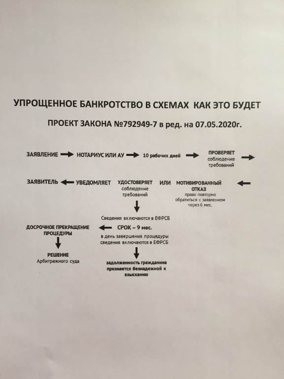 Схема внесудебного банкротства пока выглядит, как представлено на фото: