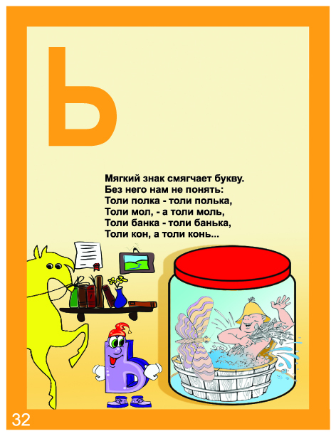 Нет также буквы мягкий знак, но без него нельзя никак, ведь им кончается букварь и размягчается сухарь.