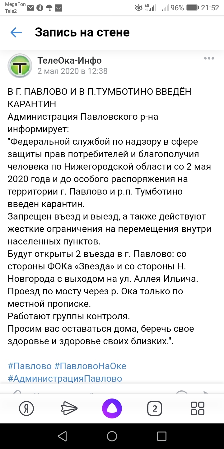 Да-да, Павлово закрыли. Везде блокпосты. На работу в Нижний Новгород и в область даже с QR-кодом не выпускают.