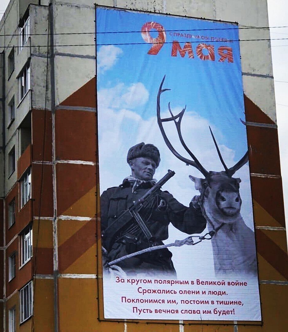 В Республике Коми, в городе Усинск был сооружён баннер с финским солдатом-оленеводом и автоматом Suomi KP/31 в руках. Внизу был представлен отрывок стихотворения Галины Грицаченко "Рогатые батальоны":